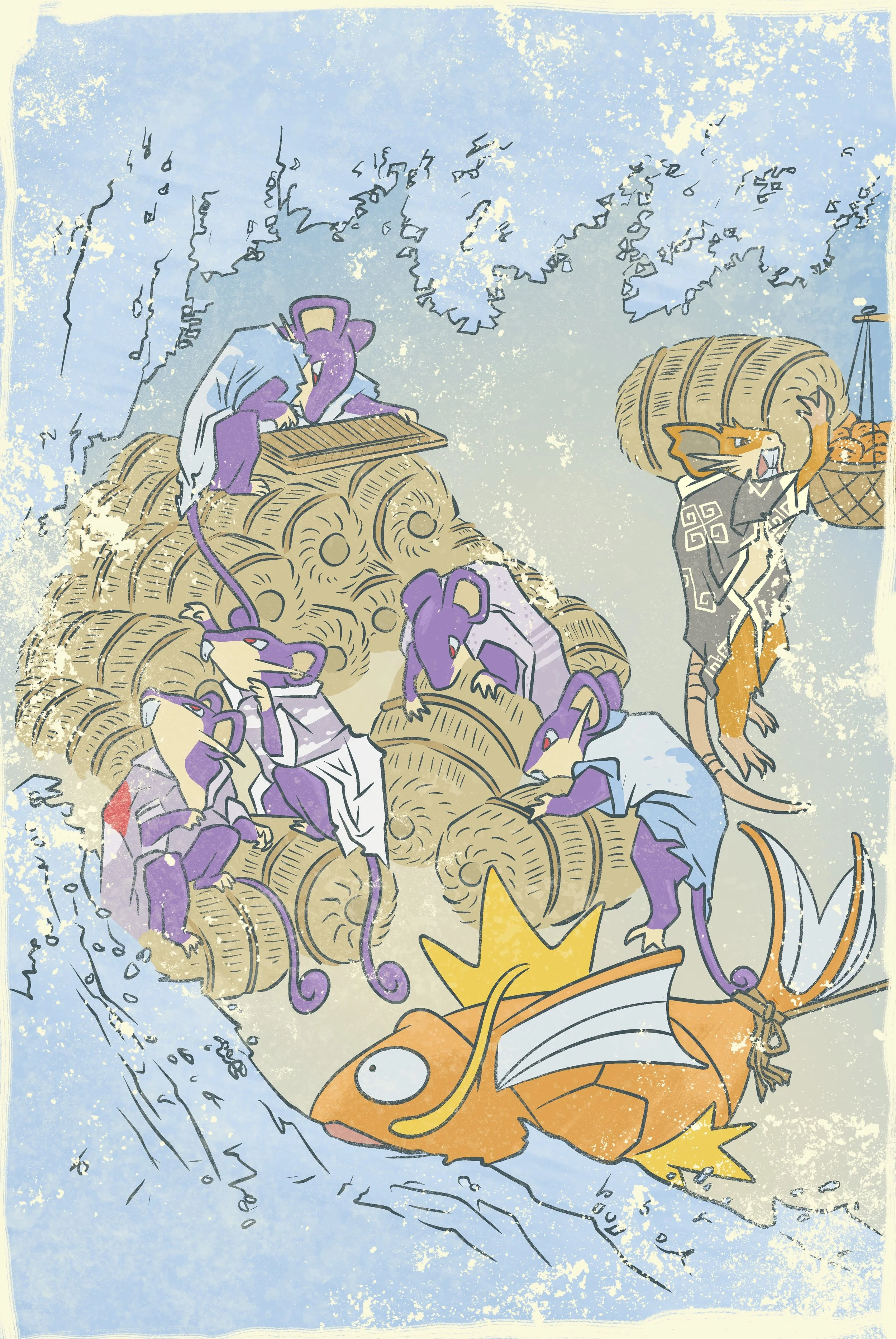 ARE A SERIES OF FUSION/HOMAGE PIECES DEPICTING POKEMON IN HOKUSAI’S PAINTINGS AND STYLE (SORTA) BECUASE THEY ALWAYs SAY “CREATE WHAT YOU WANT TO SEE”, SO HERE WE ARE… NOW BUY SOME